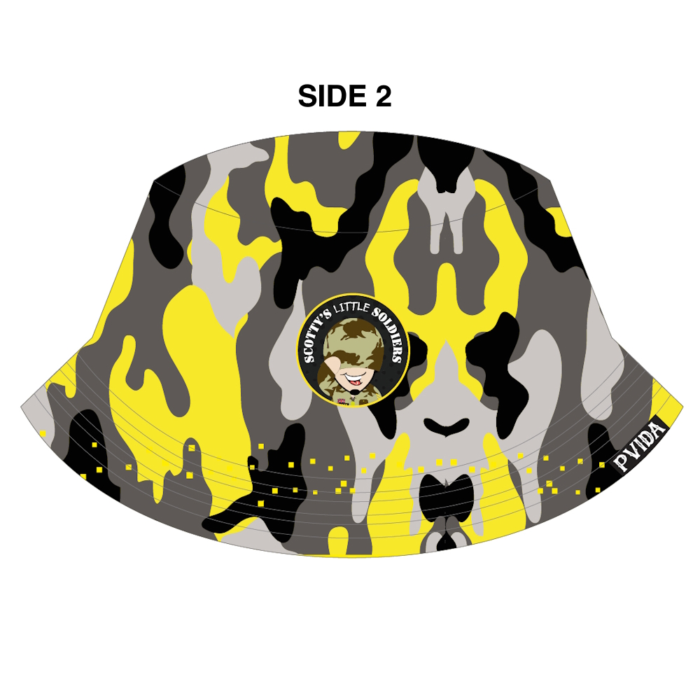 Introducing the Scottys Little Soldiers Reversible Bucket Hat, a stylish accessory for any occasion. This vibrant bucket hat features the Scottys Rugby Dubai 2025 pattern on one side and camo on the other.