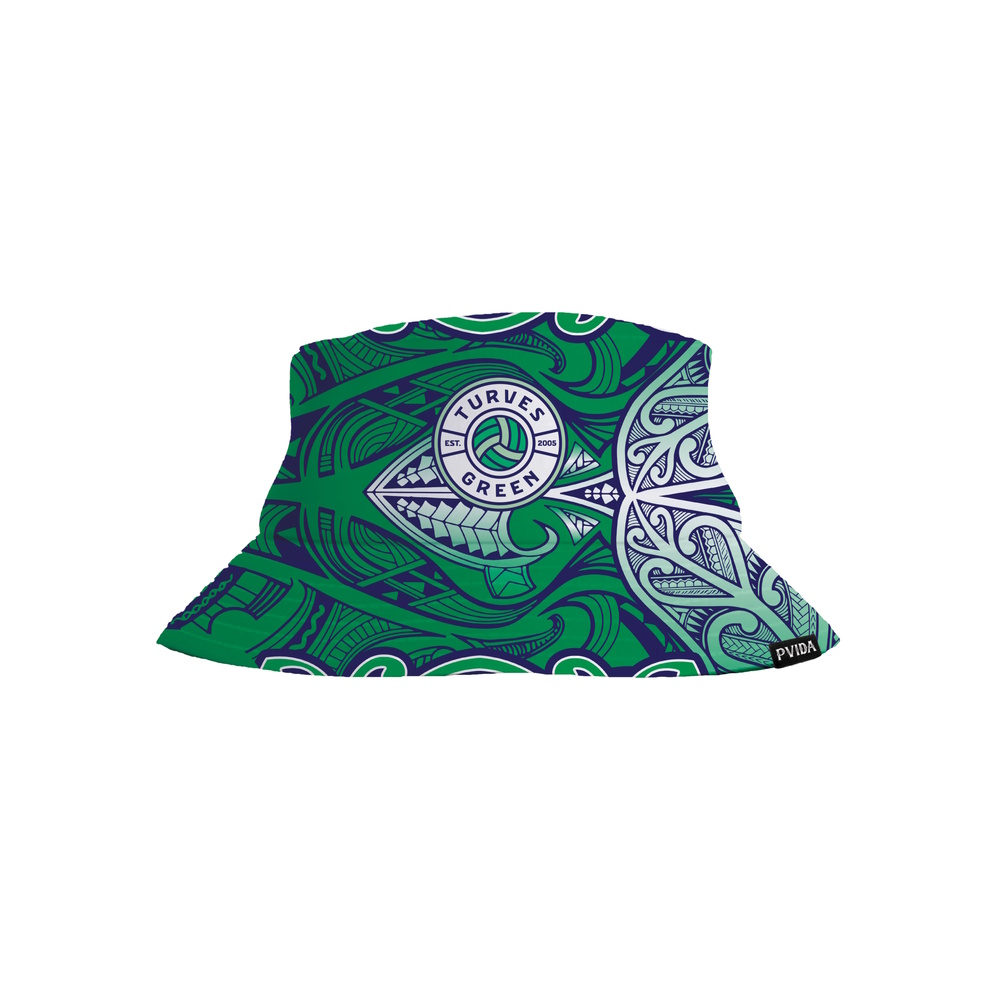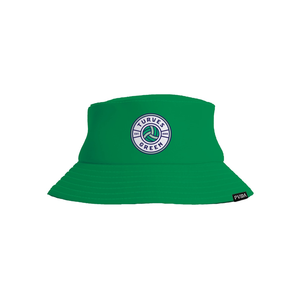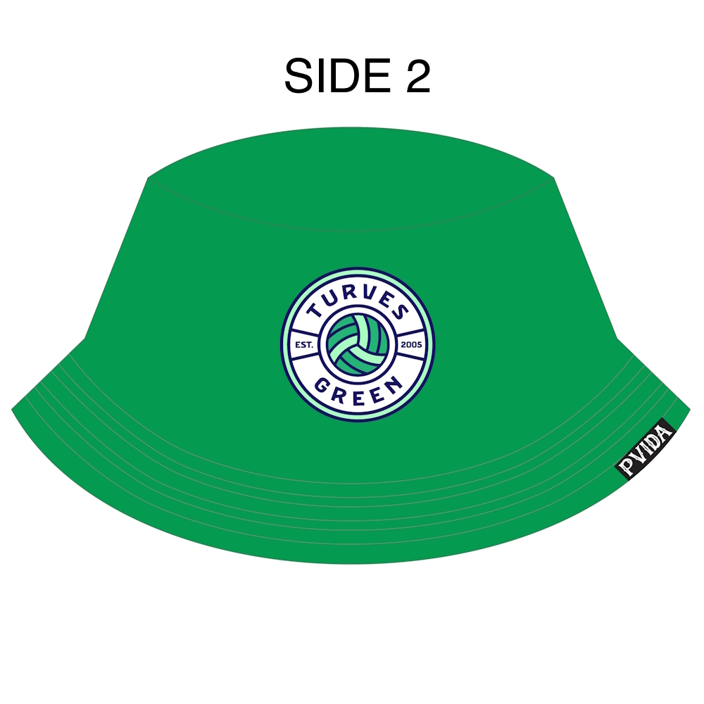 Introducing the Turves Green Reversible Bucket Hat, a stylish accessory for any occasion. This vibrant bucket hat features the Turves Green Netball Dress design on one side and a plain green design on the other.